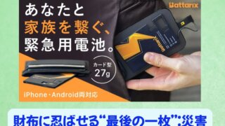 おすすめのサービス【Batterix Power Card】財布に忍ばせる“最後の一枚”:災害でも家族とつながる小さな安心 「その不安」は、今日から減らせます 地震、台風、豪雨―― 日本で暮らしている以上、「災害」はいつ起きても不思議ではありません。 そして多くの人が、災害時に最初に感じる不安。 それはスマホの充電切れです。 ・家族と連絡が取れない・正... 2026.01.20おすすめのサービス