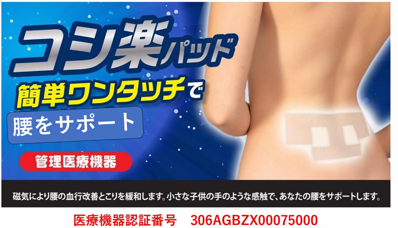 それが、京都大学教授による磁気性能評価を経て、管理医療機器として認可を受けた新発想の腰用磁気パッド「コシ楽パッド」です。