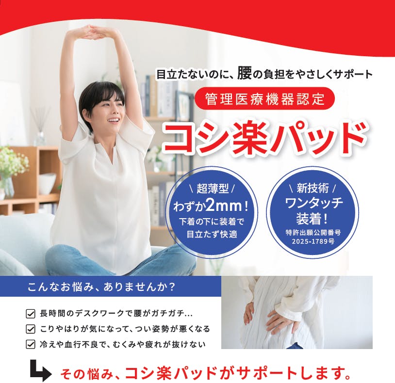 本記事では、「コシ楽パッド」の魅力についてご紹介いたします。