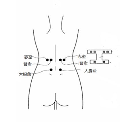 「大腸兪」「腎兪」「志室」など、腰のツボを広範囲にカバー