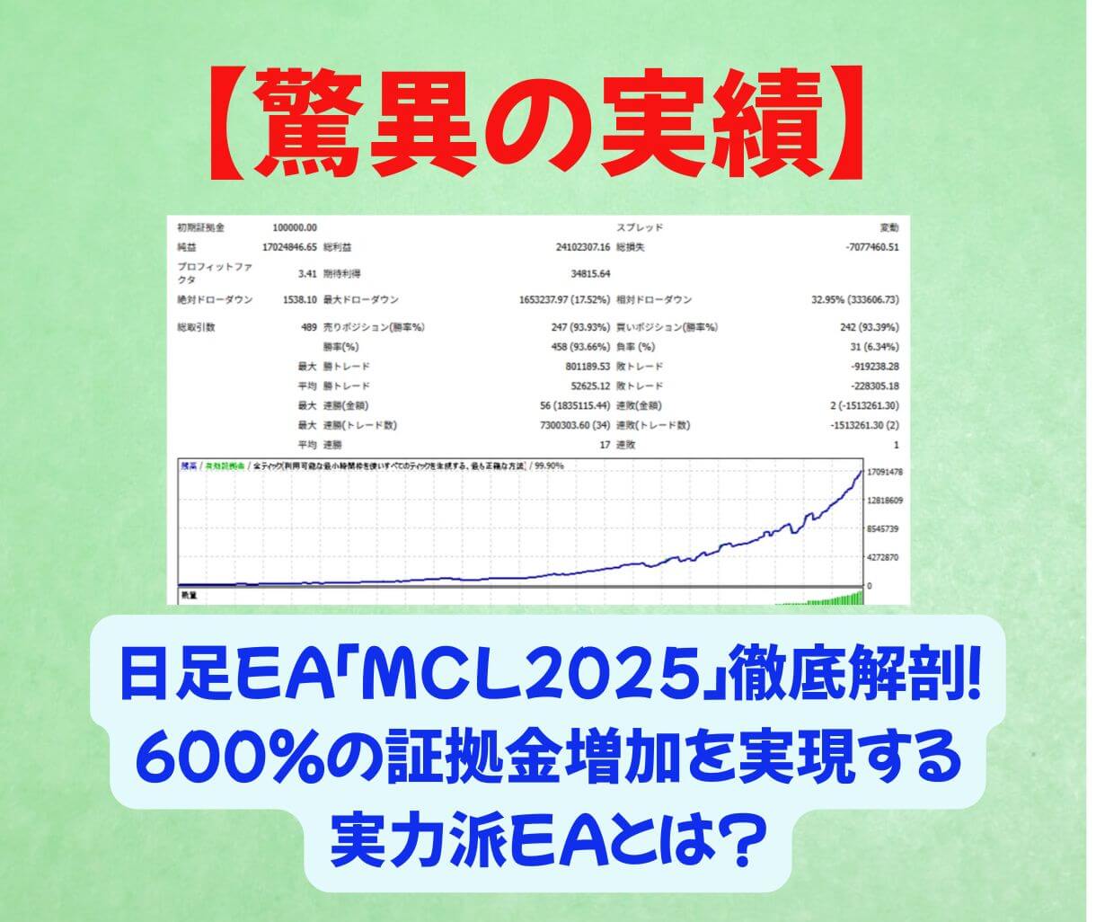 しかし、今回ご紹介する**日足EA「MCL2025」**はその常識を覆す存在です。