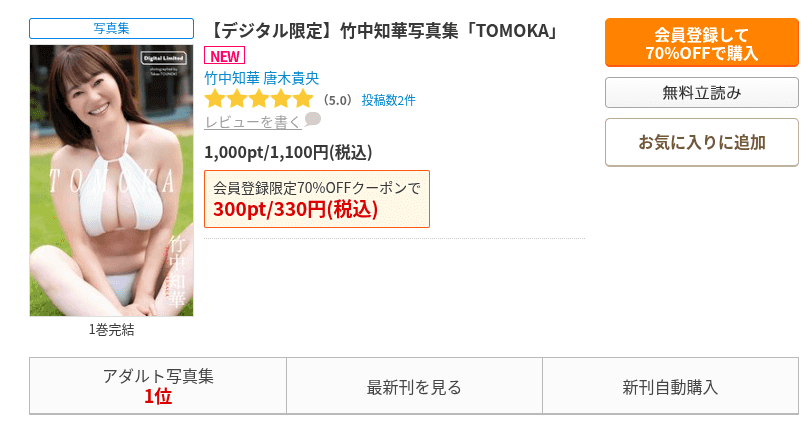 本記事では、「【デジタル限定】竹中知華写真集「TOMOKA」」 をできる限り安くお得に買う方法について紹介しています。